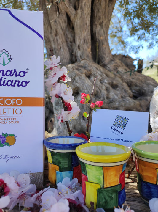 Regalo Siciliano: Vaso "Fico d' India" in Ceramica di Caltagirone, Memorie della Terra Syrah 100% (Cantina Terrasol), Spaghetti e Calamarata (L'Angelica)